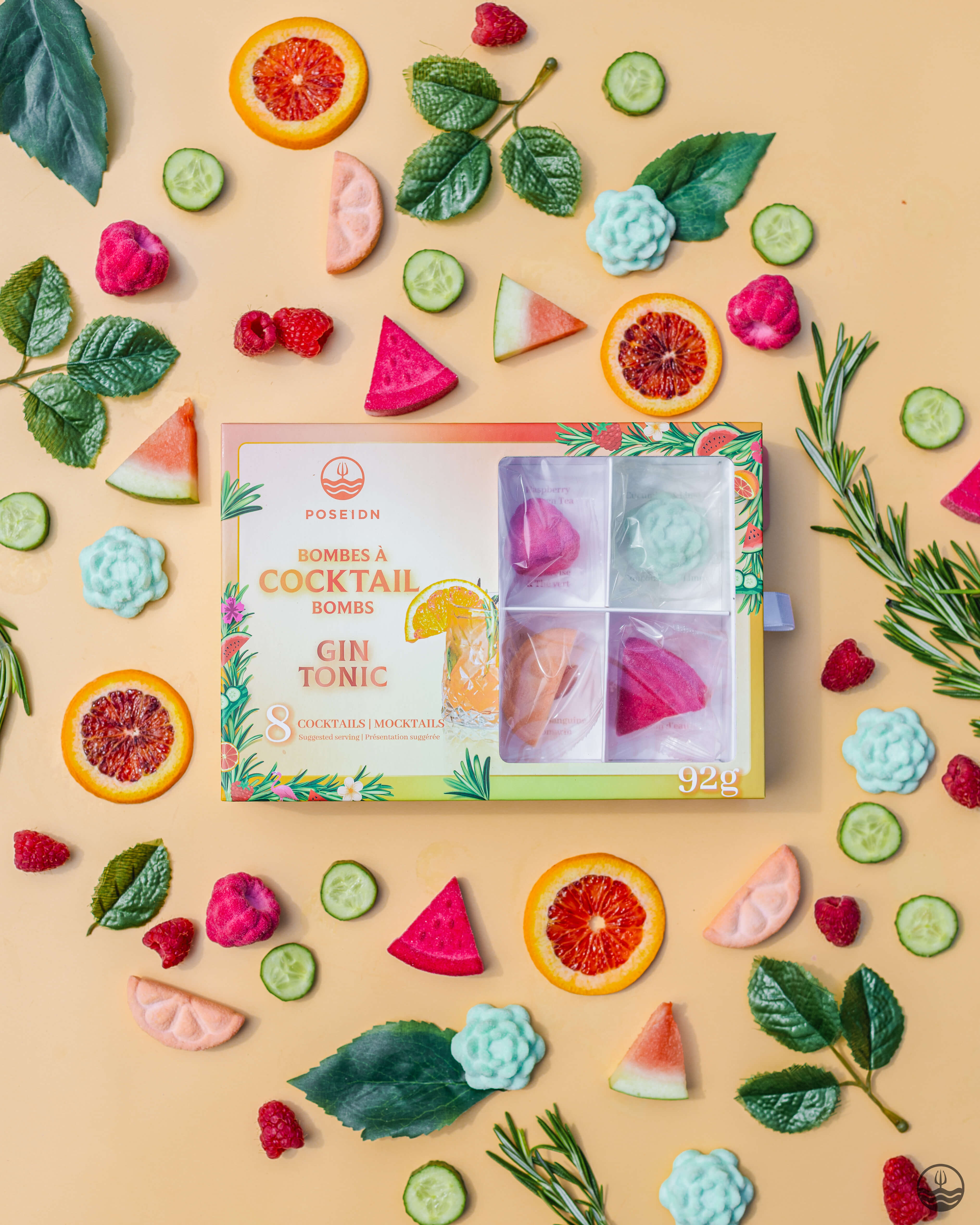 The perfect kit for gin lovers and mocktail enthusiasts! Discover our selection of amazing 3D-shaped Cocktail Bombs made to create delicious flavoured Gin Tonic cocktails or mocktails in 3 simple steps. The pack includes 8 Cocktail Bombs in 4 different flavours, making your next favourite mixologist-approved drinks super easily!