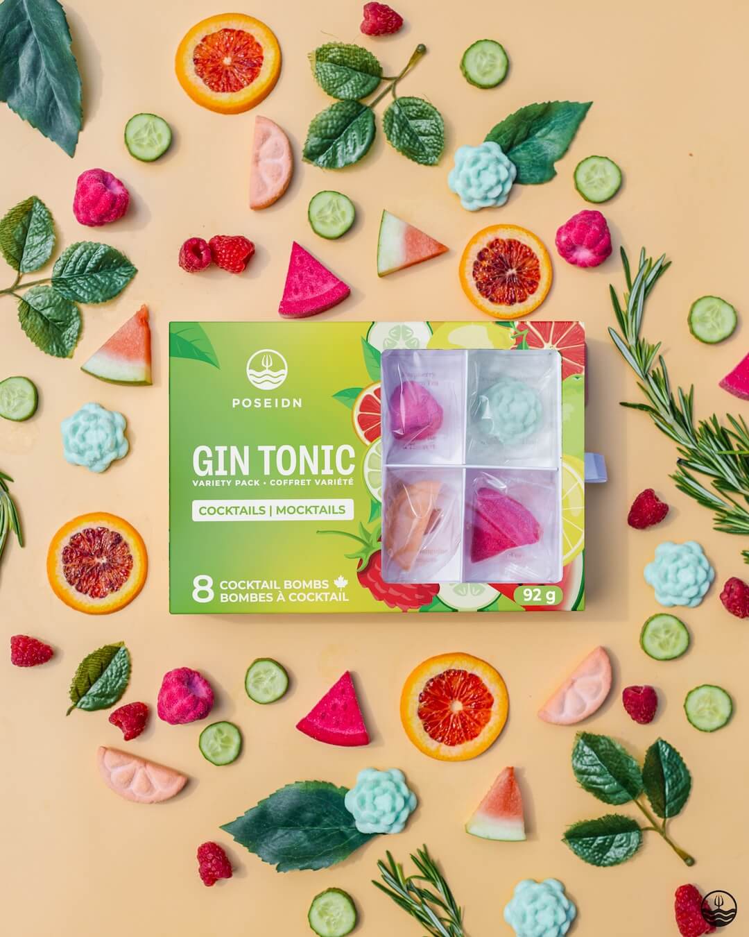 The perfect kit for gin lovers and mocktail enthusiasts! Discover our selection of amazing 3D-shaped Cocktail Bombs made to create delicious flavoured Gin Tonic cocktails or mocktails in 3 simple steps. The pack includes 8 Cocktail Bombs in 4 different flavours, making your next favourite mixologist-approved drinks super easily!
